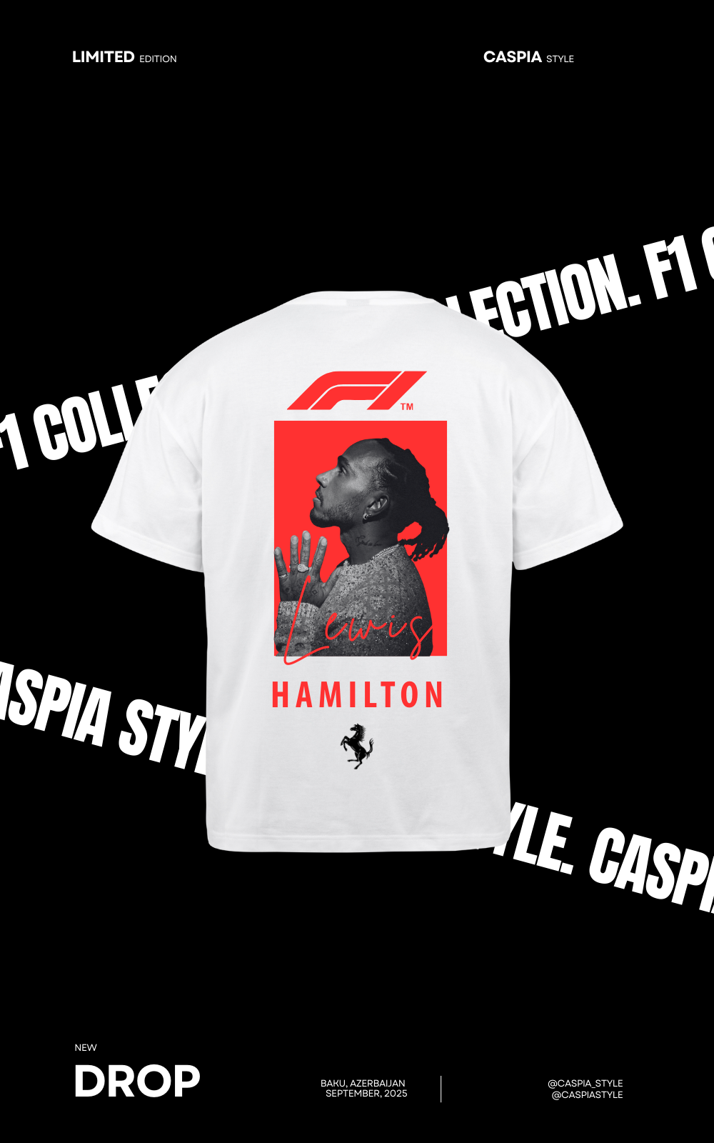 Ferrari red meets Baku’s spirit. Featuring Leclerc’s iconic machine alongside the pomegranate - the symbol of strength and heritage - this design celebrates speed, culture, and victory. Made for fans who bleed red and roar with every lap.