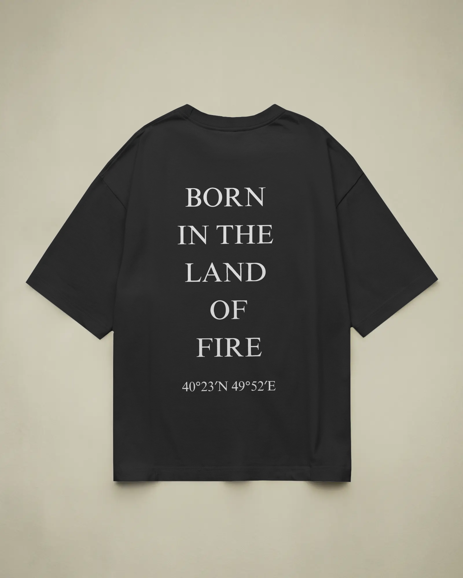 Pay tribute to the spirit of Azerbaijan with the Born in the Land of Fire Tee. Featuring bold typography and the exact coordinates of Baku, this oversized black tee is a minimal yet powerful statement piece. A design that represents pride, heritage, and roots - made for those who carry the Land of Fire wherever they go.
