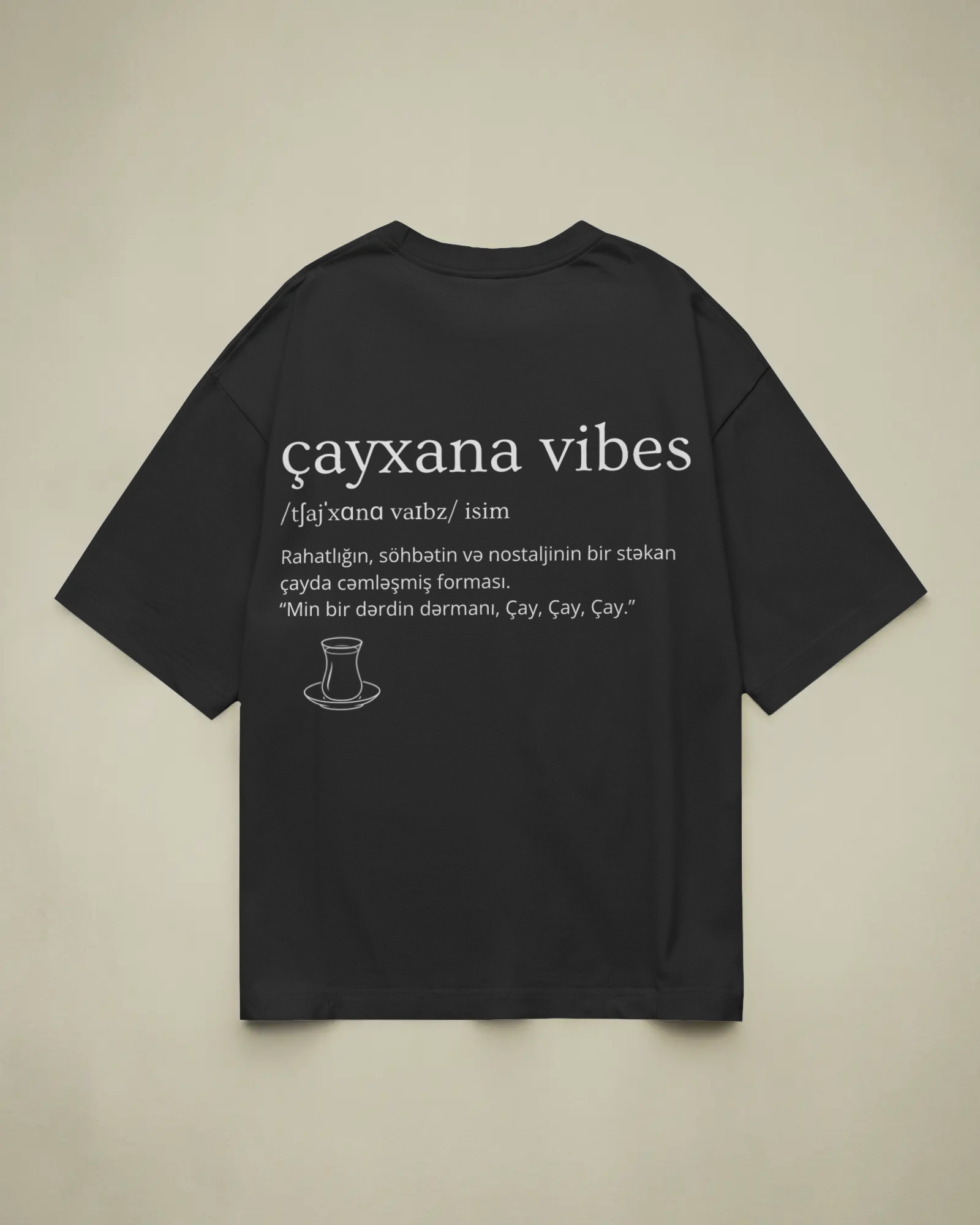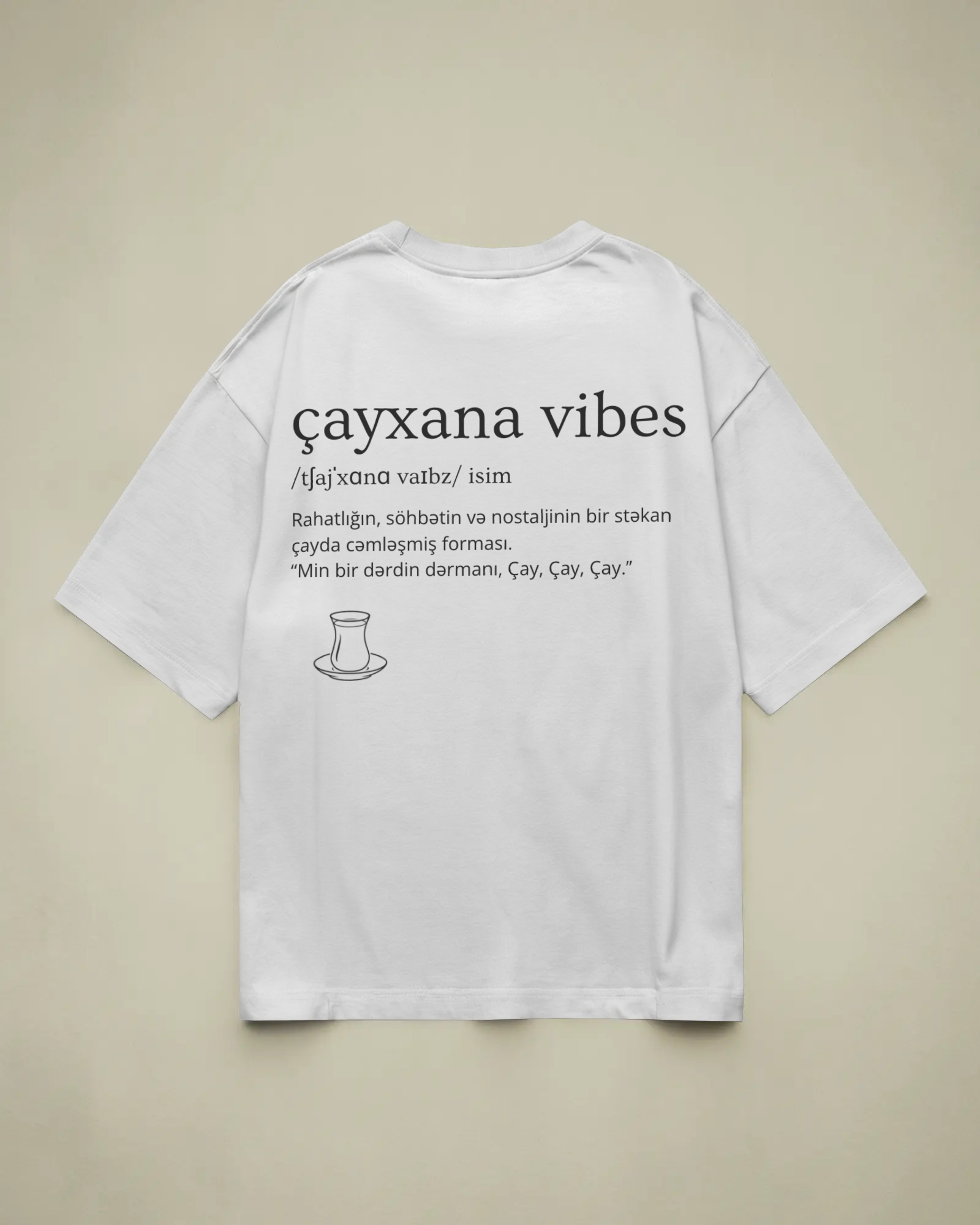 The Çayxana Vibes Tee is a wearable tribute to every tea-fueled conversation, slow sunset, and moment of peace shared in local çayxanas. Featuring a clean minimal design with phonetic definition, poetic description, and the iconic glass of Azerbaijani tea — this piece blends nostalgia with streetwear simplicity.
