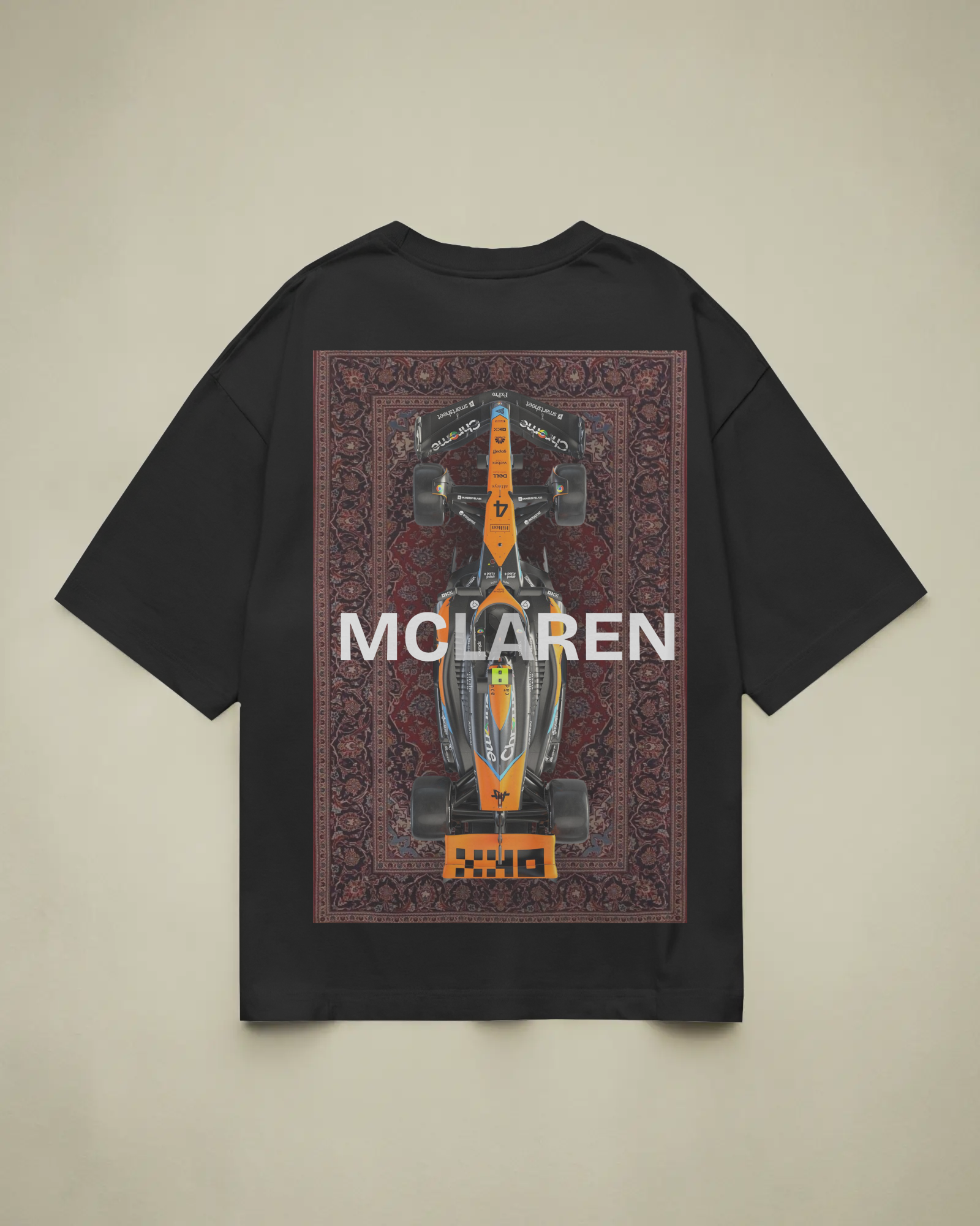 Show your McLaren pride with the McLaren Carpet Edition Tee. Designed with a striking top-view of the McLaren F1 car over a carpet backdrop, this oversized tee is all about speed and style. A must-have for true motorsport and streetwear enthusiasts.